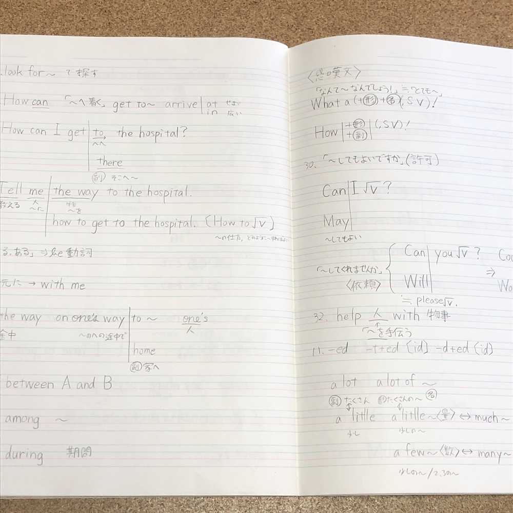 このメモが、後で、英作をすべて筆記するときや