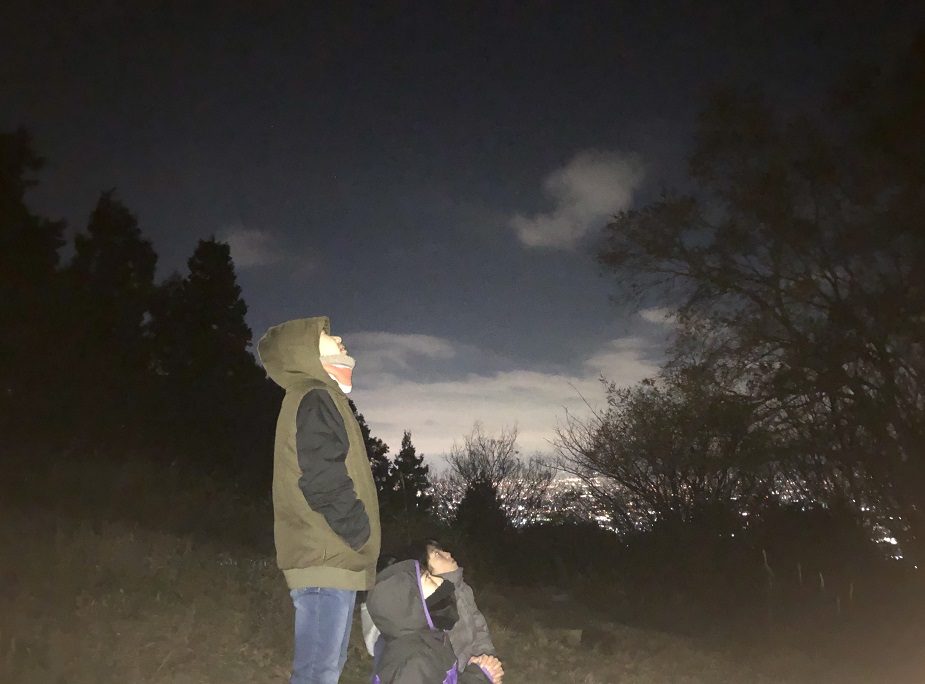 懐中電灯を持ってみずのみ園地の芝生展望台へ