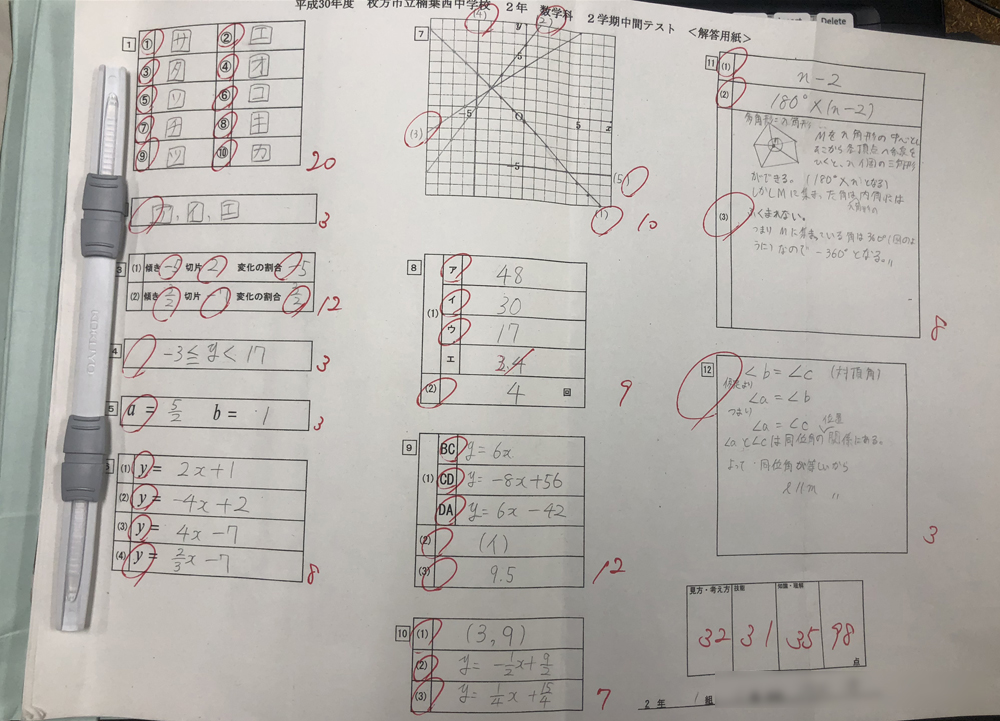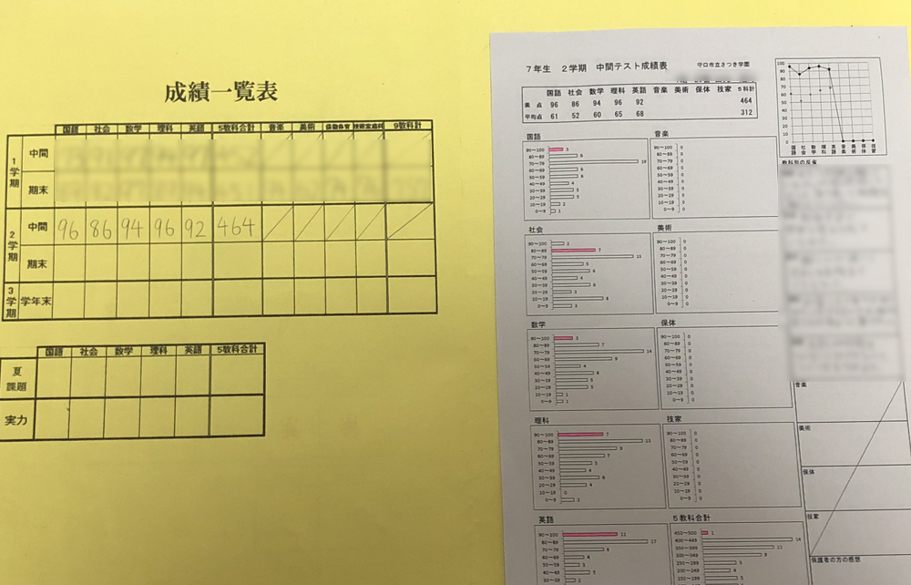 最後の中学校の中間テストも返ってきて