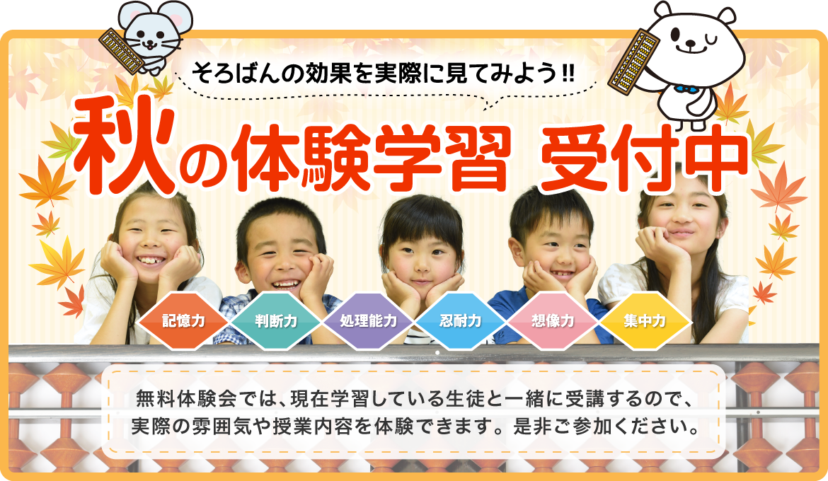 Fit速算塾 各教室 秋の無料体験学習受付中です!